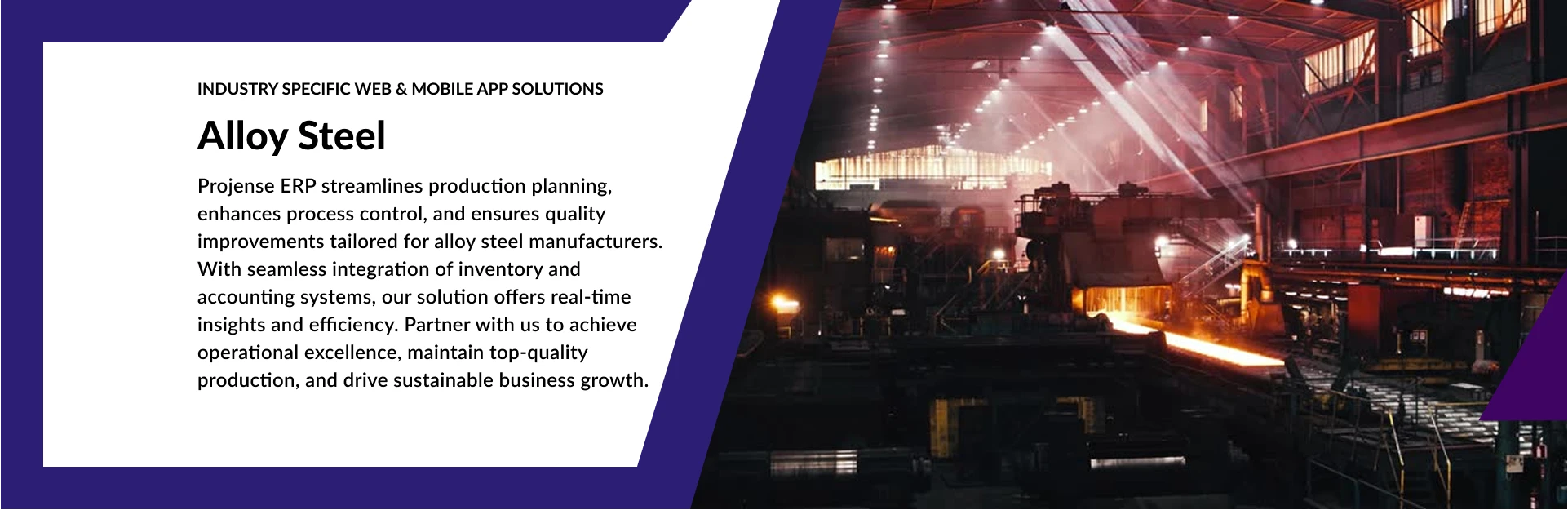 At Projense Systems, we specialize in seamless ERP implementations for the Alloy Steel industry, optimizing production, inventory, and quality control. Our solutions enhance efficiency, streamline operations, and provide real-time insights for smarter decision-making.