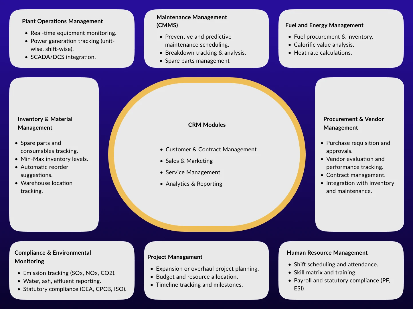 Designed to manage fuel procurement, power generation, maintenance, compliance, and distribution seamlessly.